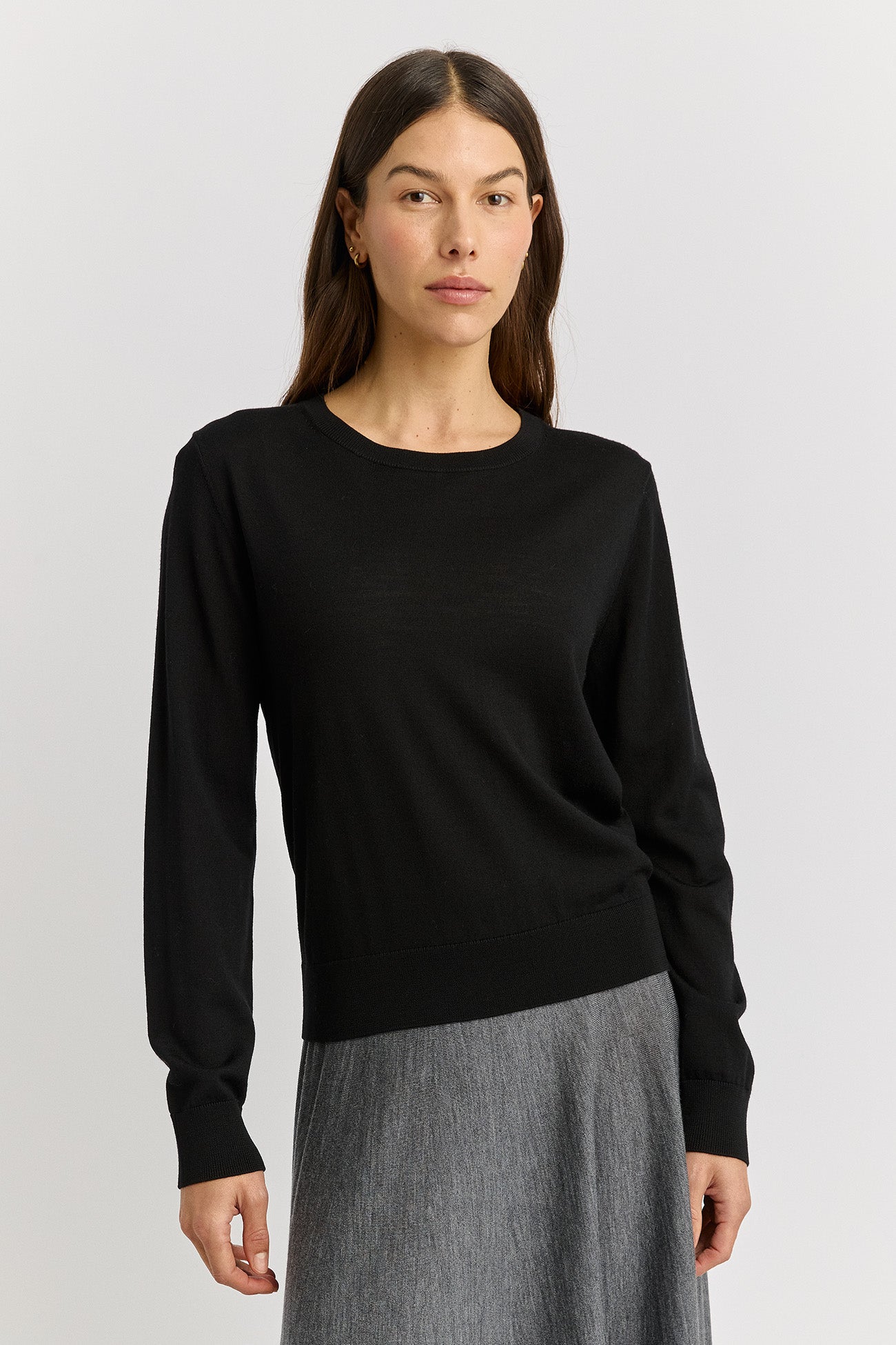The Extrafine Knit Crew is a lightweight knit, detailed with a fine rib trim along the round neck and wrists.